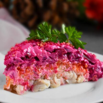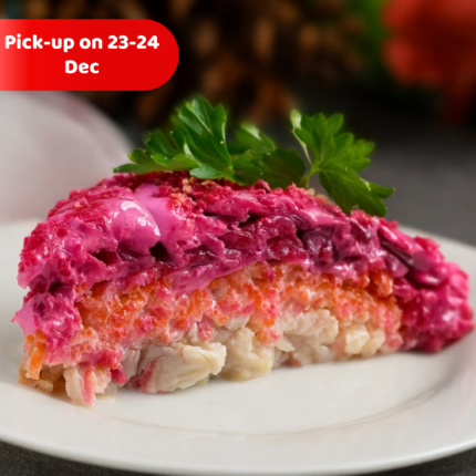 Medovyk from Lila Bakery is a traditional Eastern European honey cake made from multiple thin, tender layers flavored with honey and filled with a light, creamy filling. The dough is usually gently cooked with honey before baking, giving the layers a warm caramel-like aroma and a beautiful golden color.