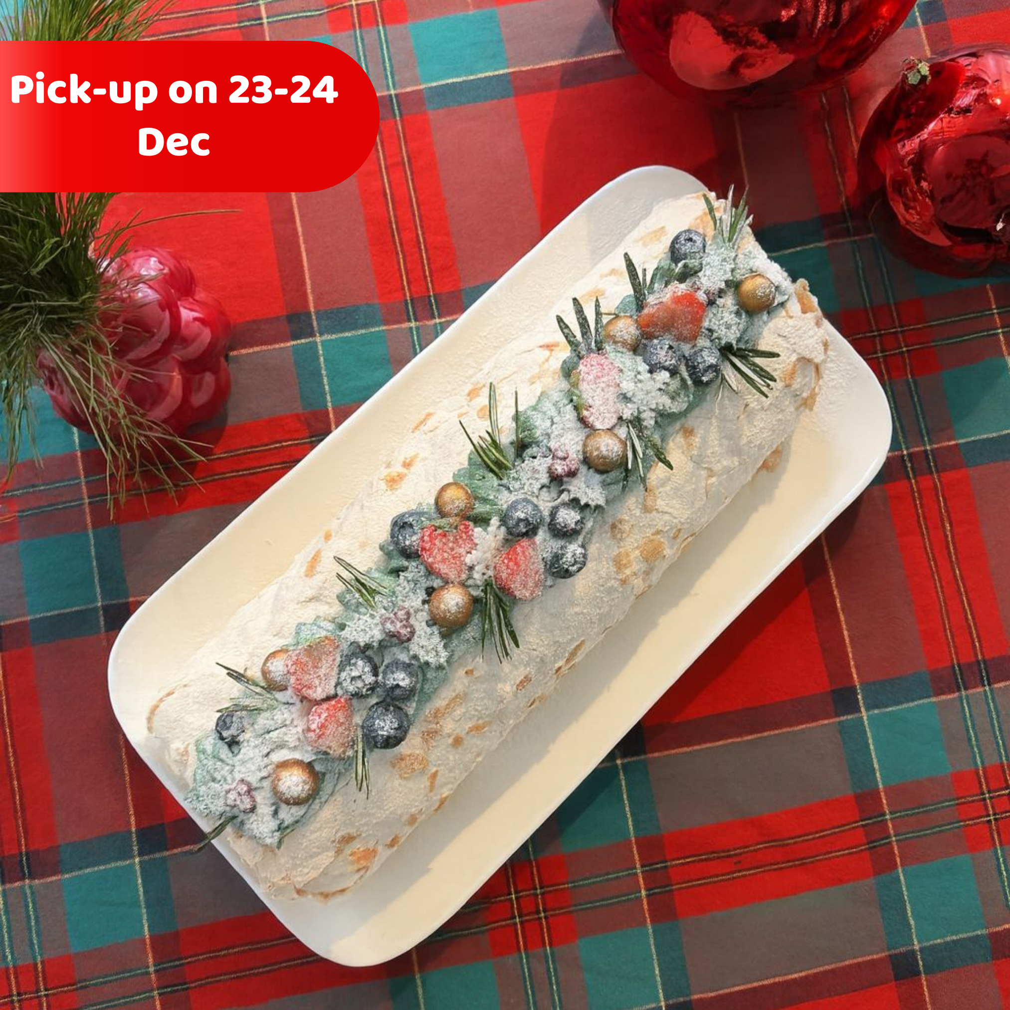 A 30-centimeter tropical meringue roulade is a light and elegant dessert made from soft, airy meringue with a delicate crisp on the outside and a marshmallow-like center. Rolled into a long, graceful shape, it looks festive and refined.